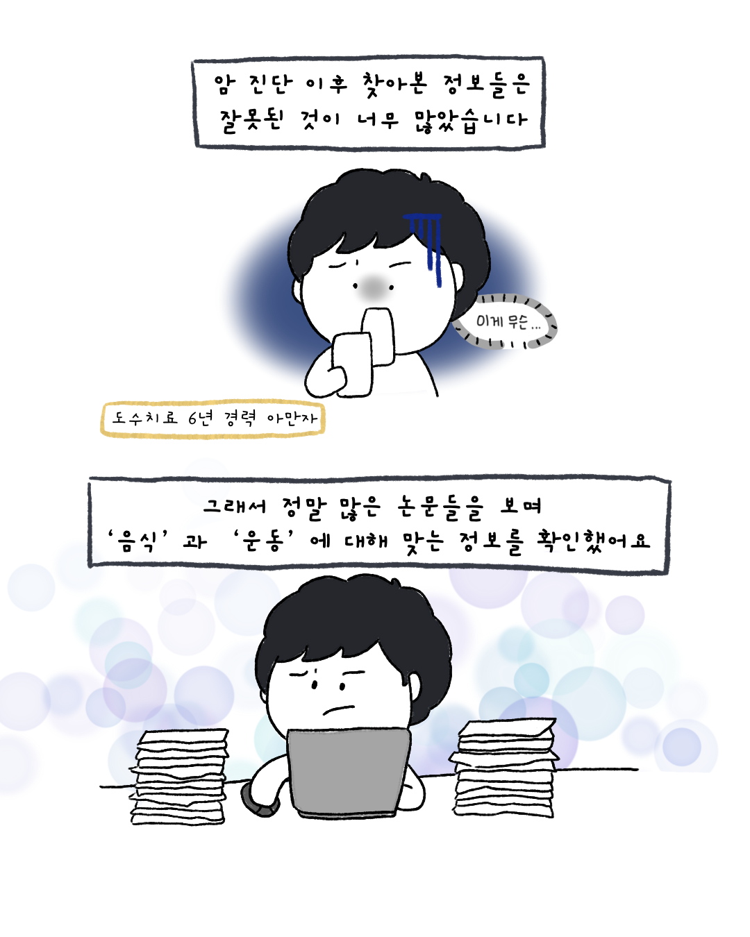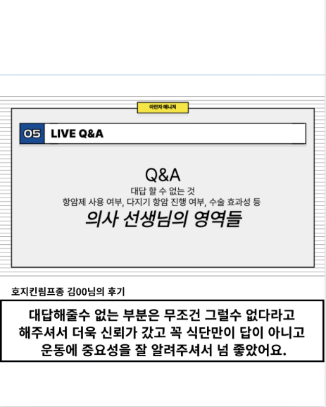 강의와 클래스를 통해 300명 가까이 되는 암 환자분들의 질문을 받다보니 이 고민은 저를 포함한 정말 많은 암 환자들의 반복되는 패턴이라는 것을 확인했습니다. 그래서 ‘누군가 대신 결정해주는 서비스’가 아니라 스스로 판단할 수 있는 기준이 필요하다고 생각했습니다.