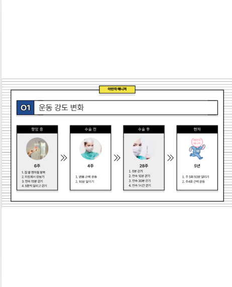온라인 강의 · 오프라인 클래스 강의 : 식단 · 유산소 오프라인 클래스 : 러닝 · 가이드라인 나눔 · 필라테스 · 퍼스널 트레이닝 암 환자 선택을 돕는 서비스 개발